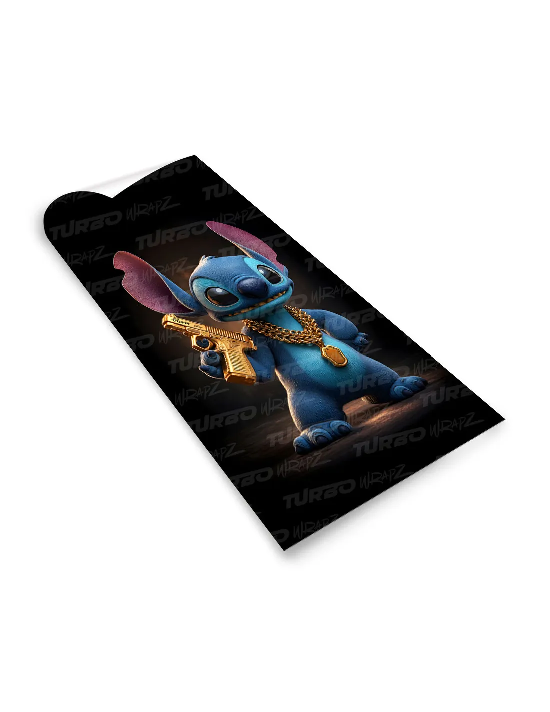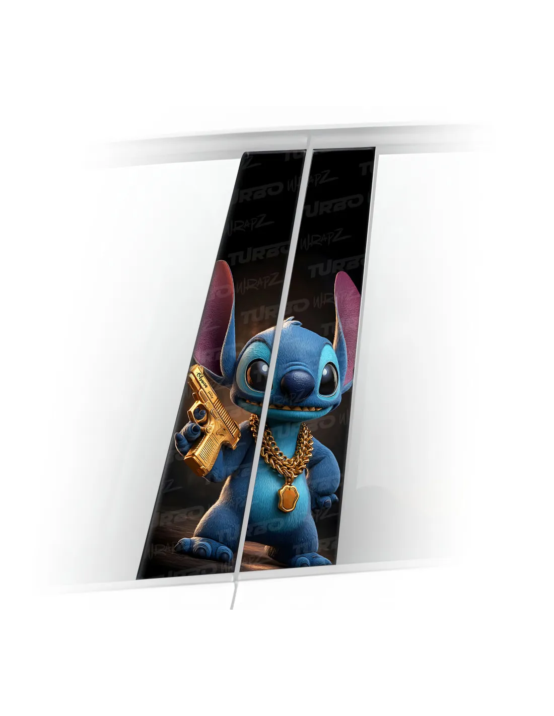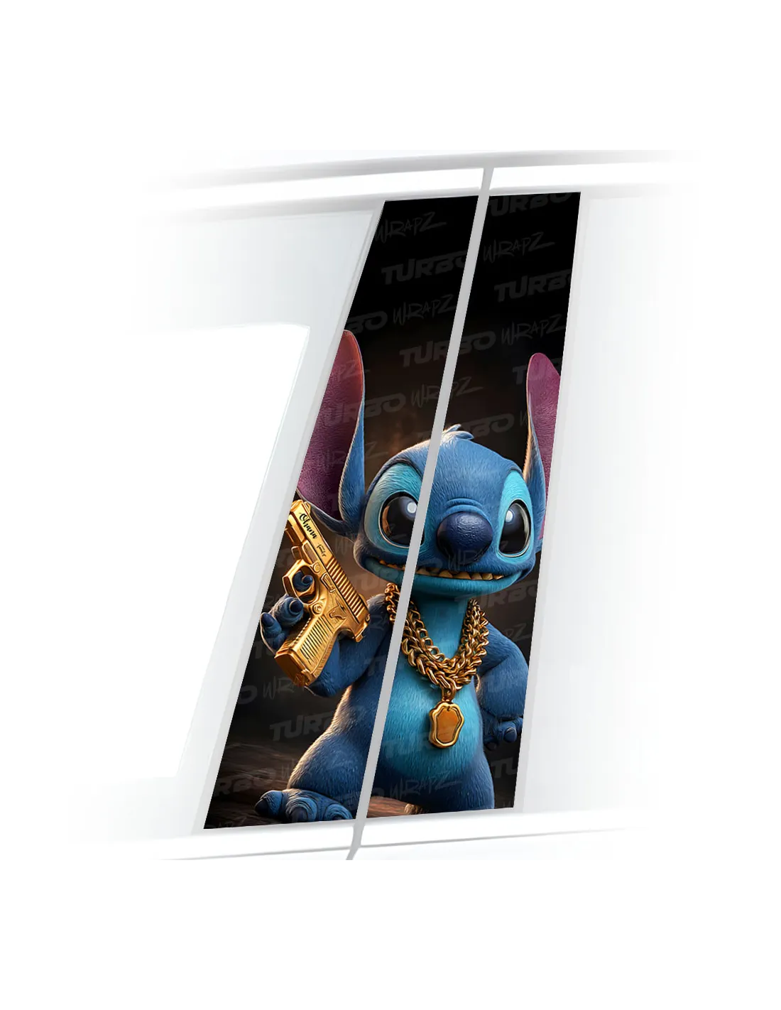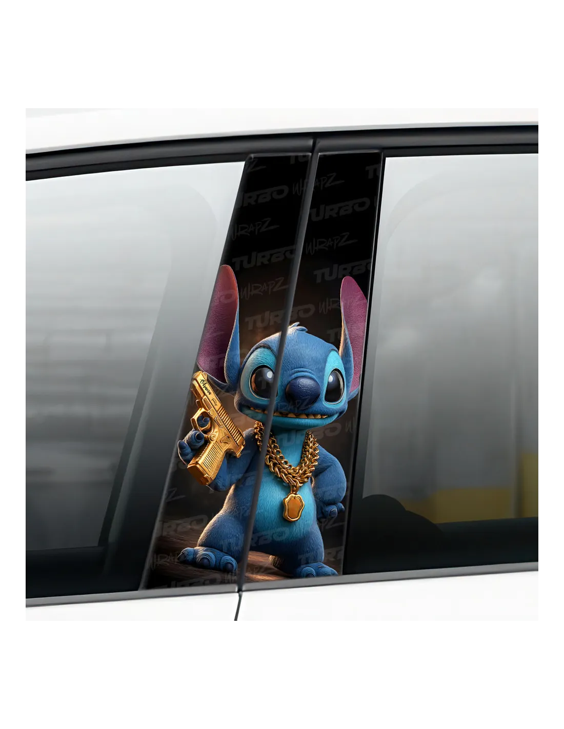 Naklejka na słupek samochodowy Stitch ze złotym Pistoletem | TurboWrapz.com